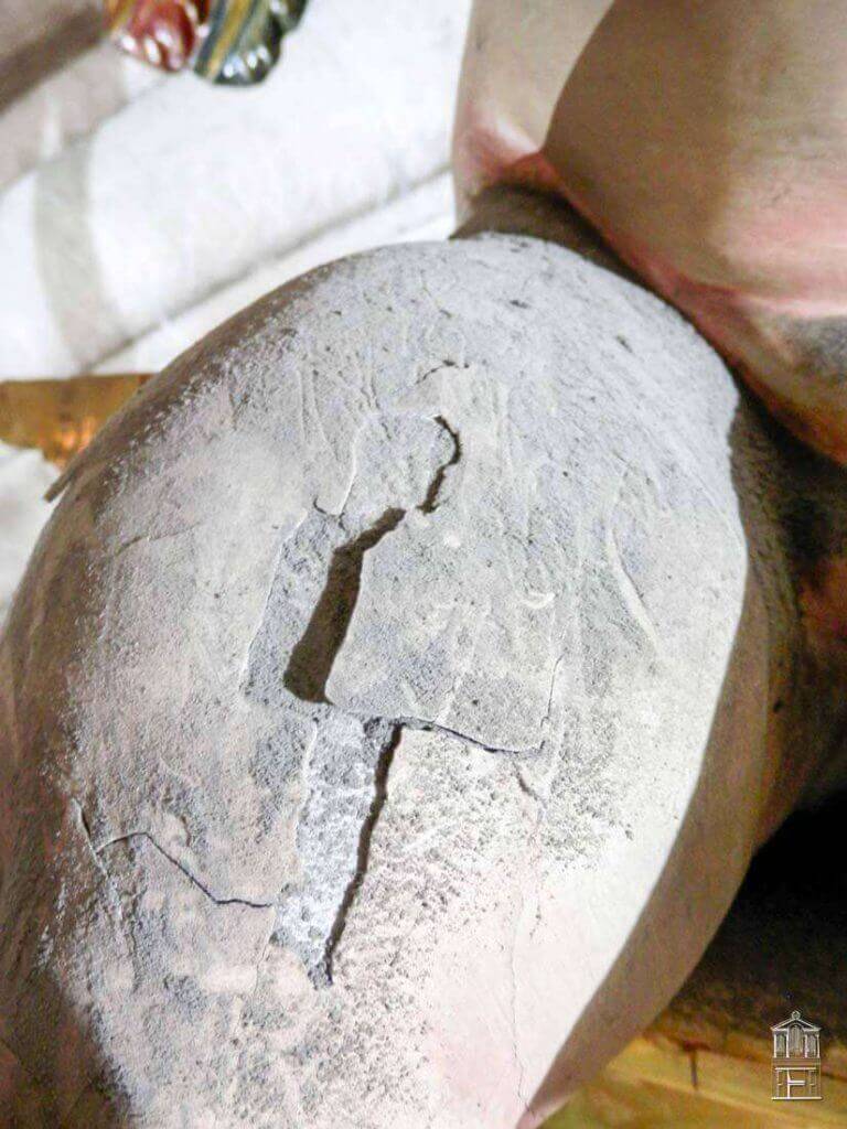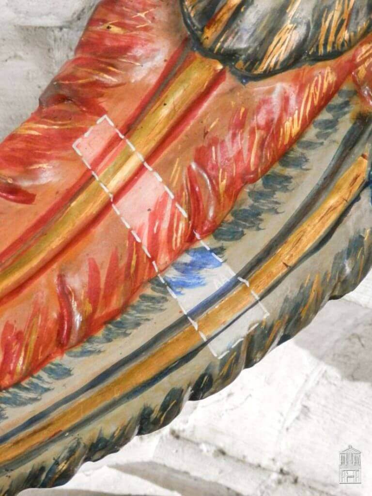 Este proceso se ha realizado en aquellas pérdidas que visualmente se consideraron necesarias para la legibilidad del mueble en su conjunto, para ello se han utilizado medios y técnicas reversibles, integrando las pérdidas de preparación y policromía.