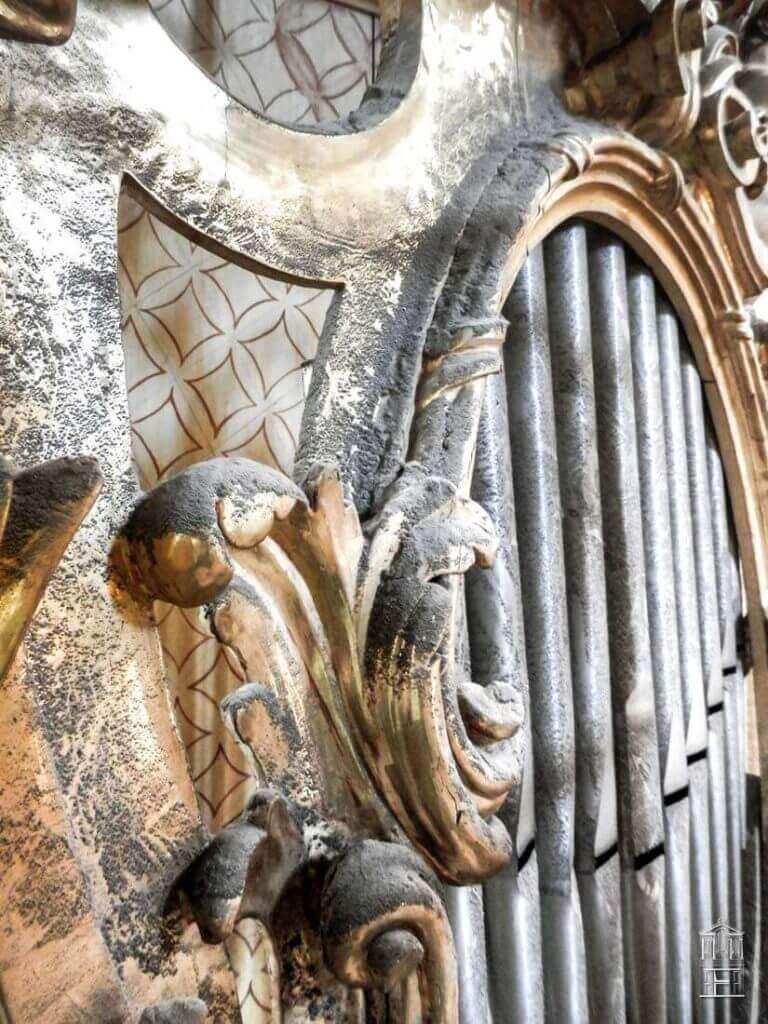 En Julio de 2018 comenzaron los trabajos de conservación y restauración de la fachada trasera del mueble del órgano.