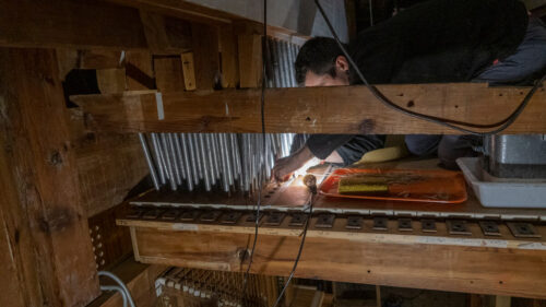 Restauración en curso por el taller de organerìa de Joaquín Lois
