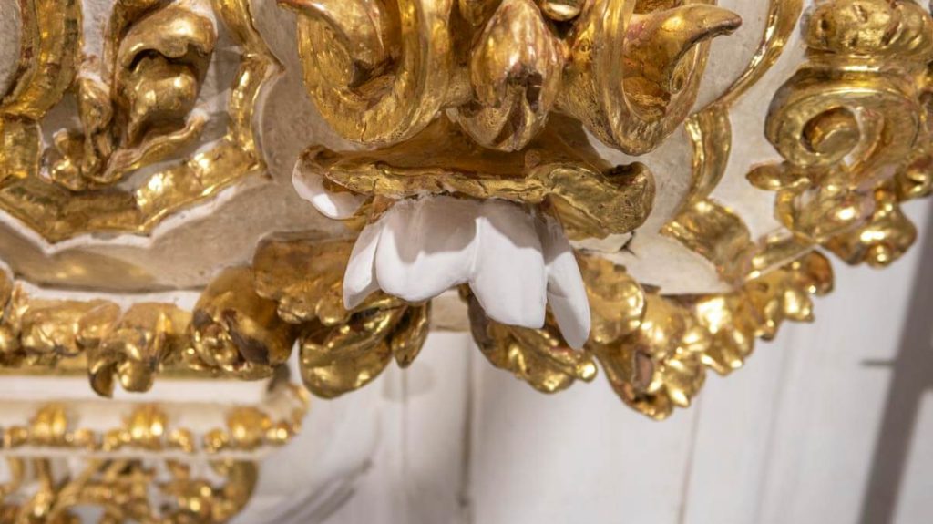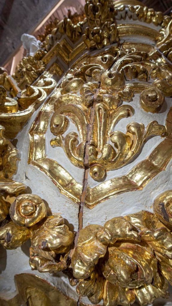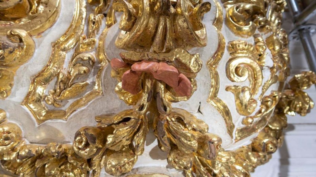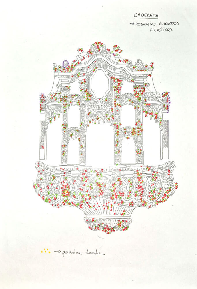 El mueble de la cadereta presentaba varios problemas pero con un origen común , el vencimiento de todo el cuerpo hacia el exterior. Esto afecta al propio cuerpo de la cadereta y a la balaustrada que es solidaria a éste y que se aprecia el desplome conjunto.