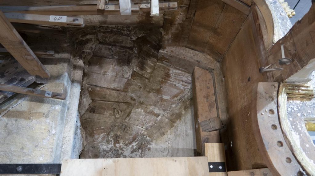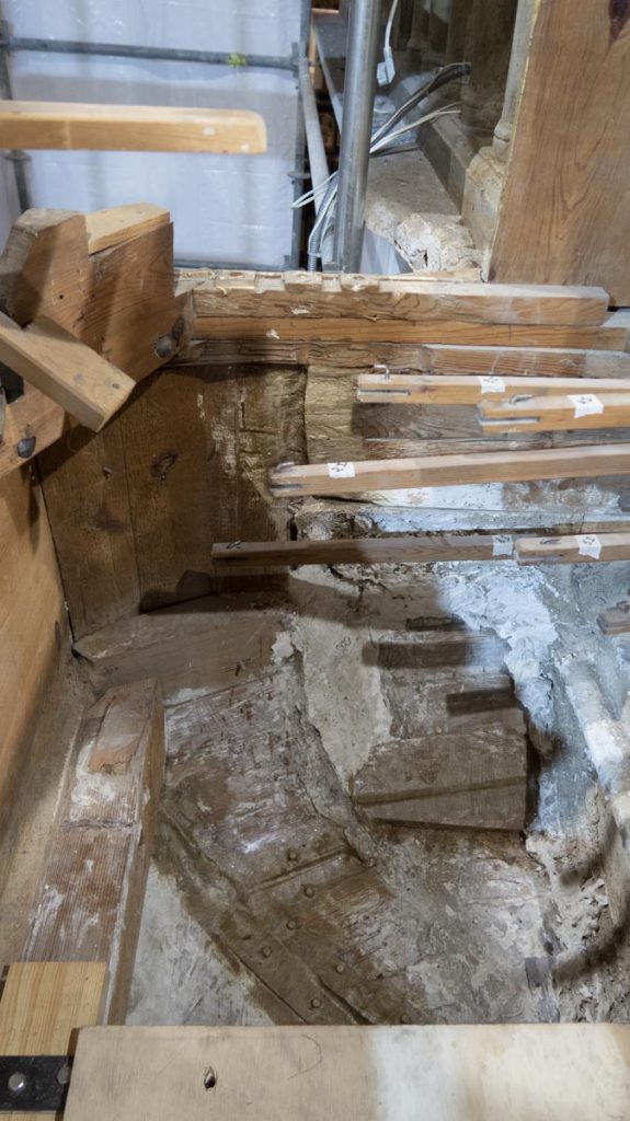 Al desmontar secretos y demás elementos se ha visto que este vencimiento no es debido a ninguna debilidad estructural que pueda seguir deformándose.