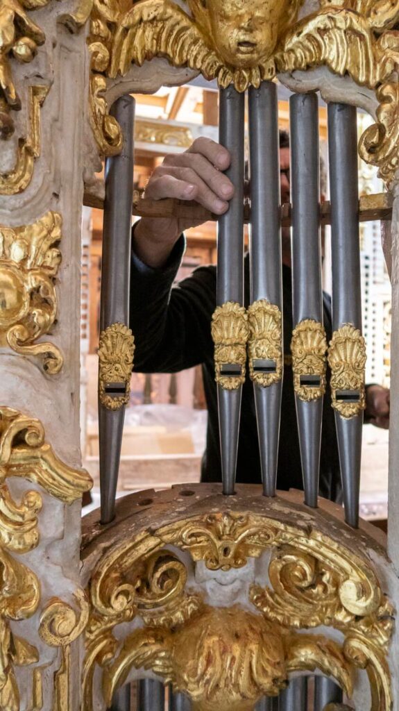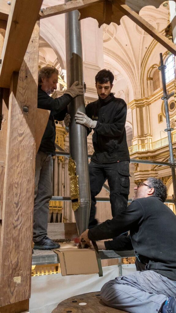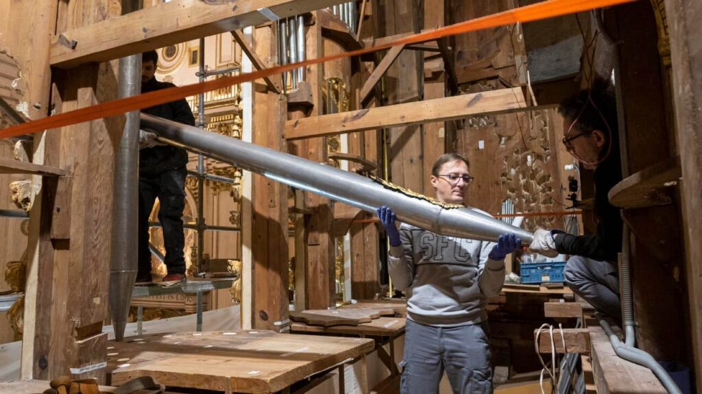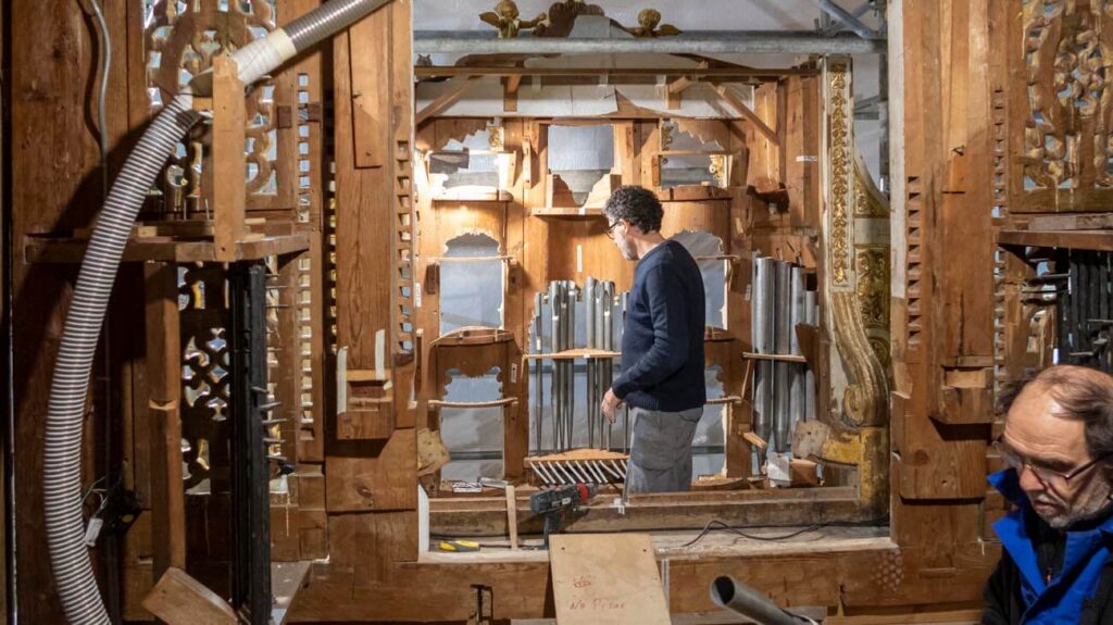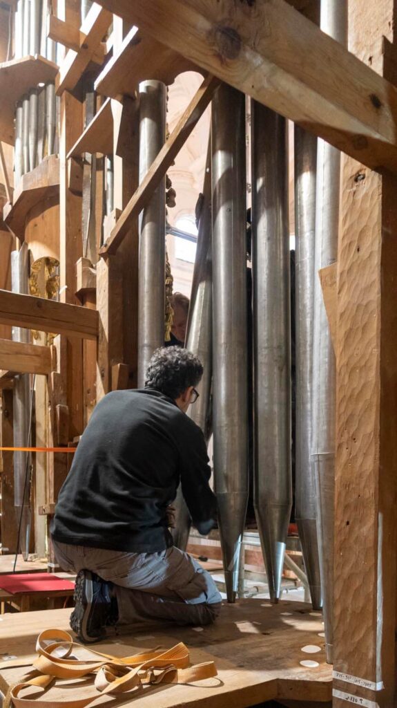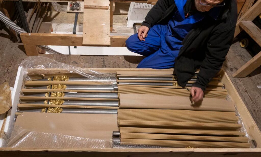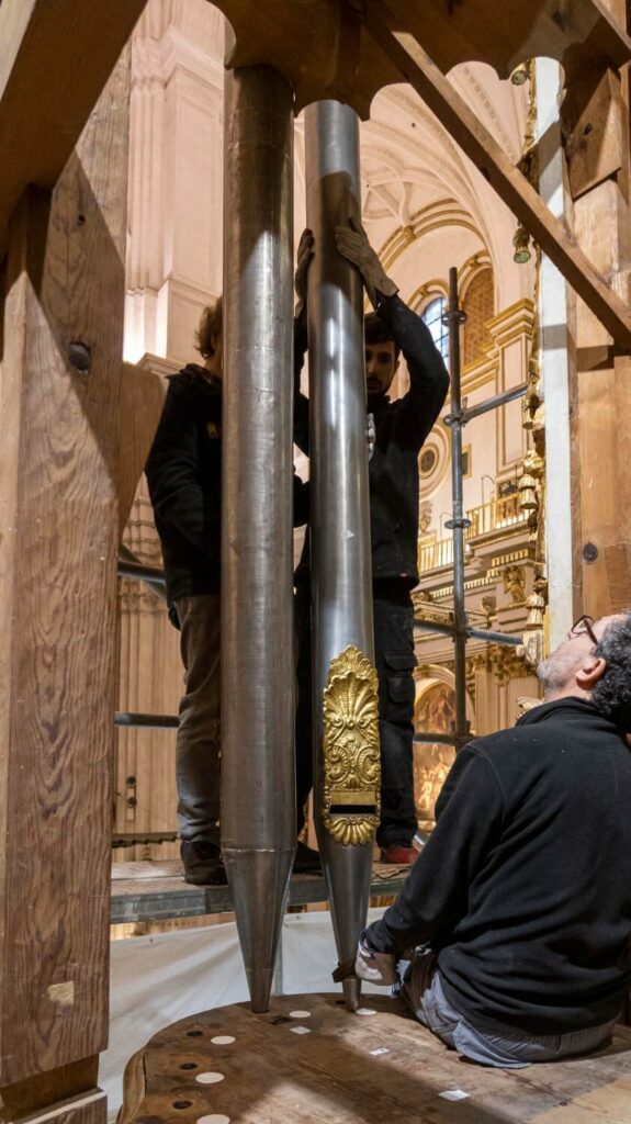 El montaje de la tubería de fachada comienza a devolver al órgano su aspecto final.