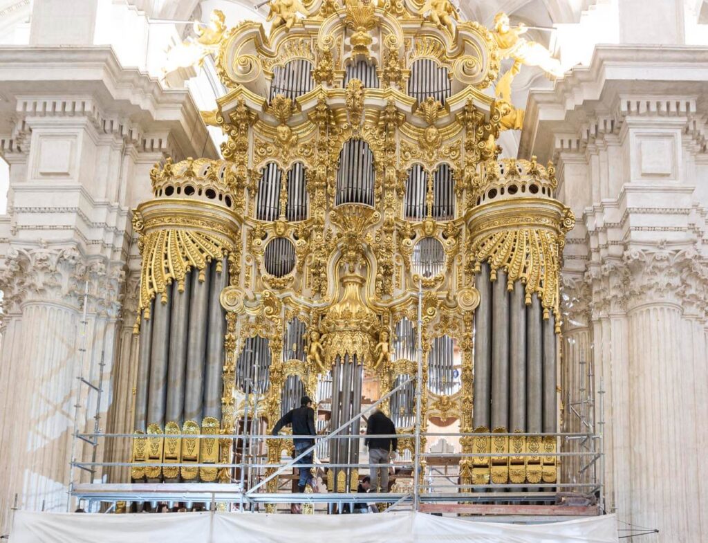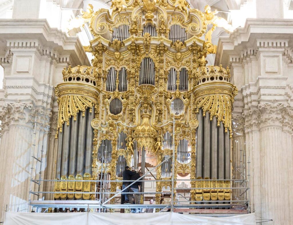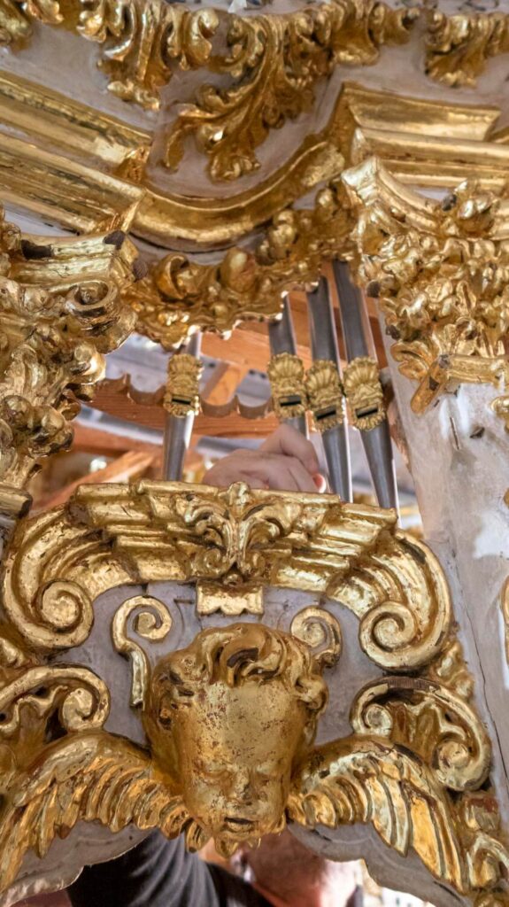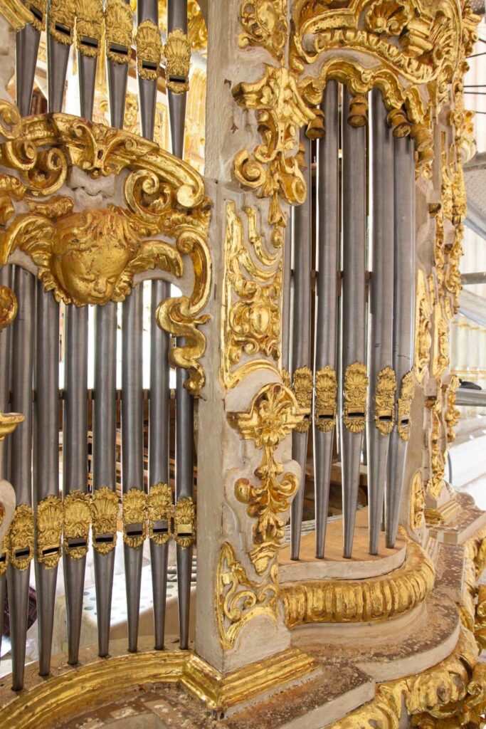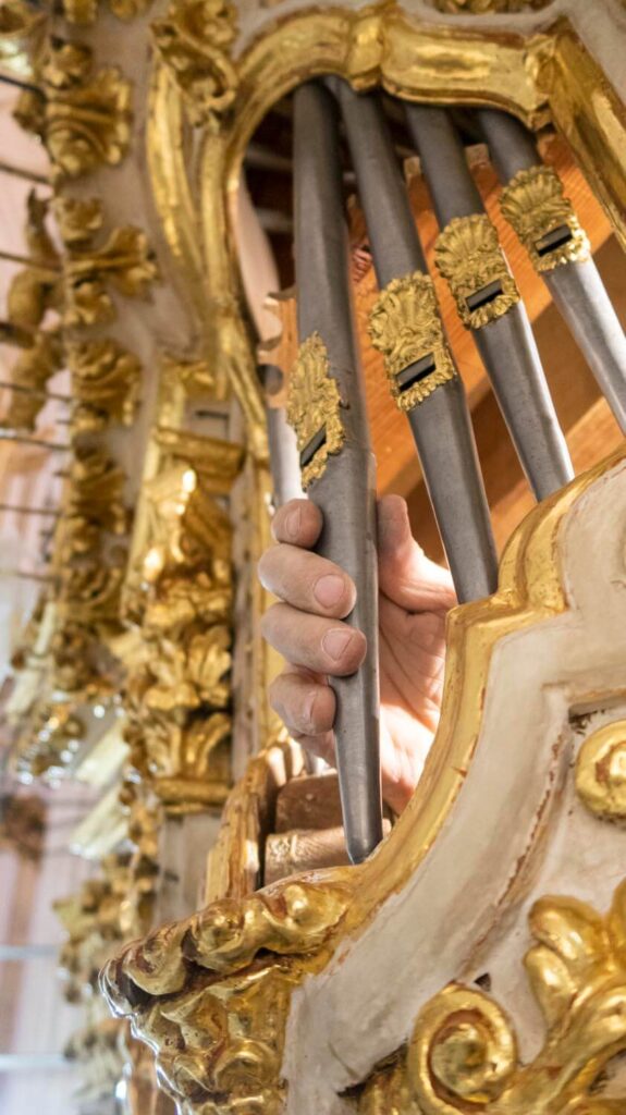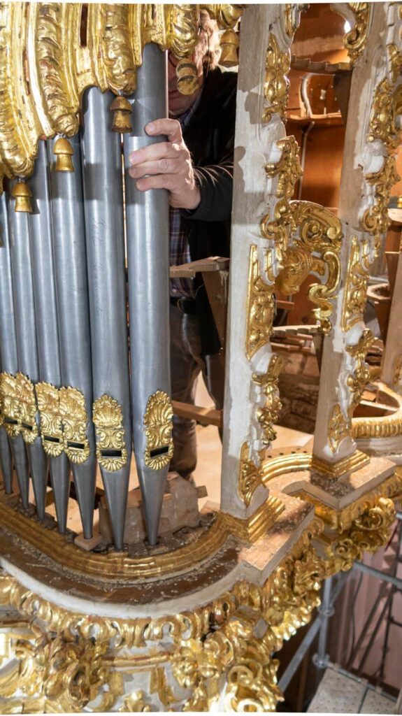 El montaje de la tubería de fachada comienza a devolver al órgano su aspecto final.