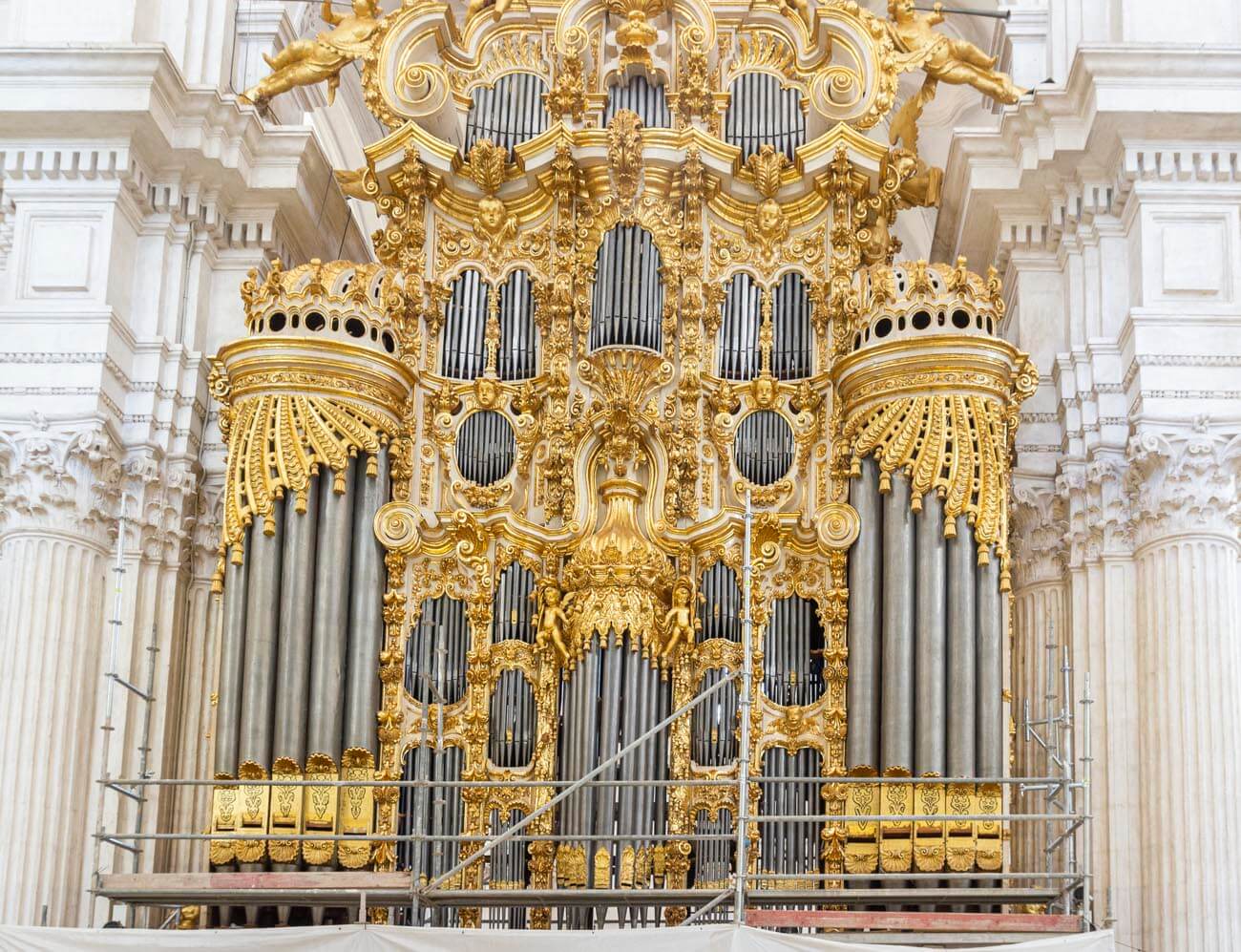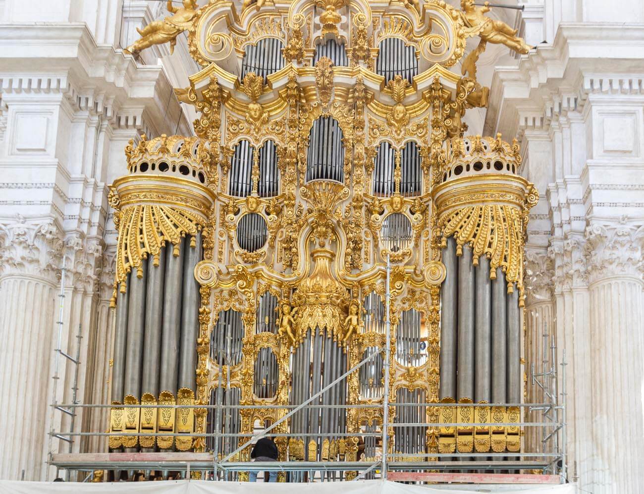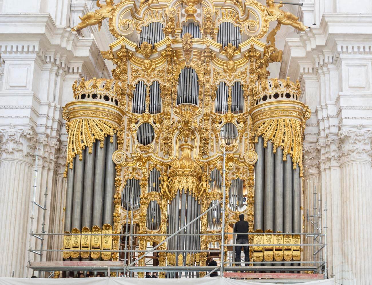 El montaje de la tubería de fachada comienza a devolver al órgano su aspecto final.