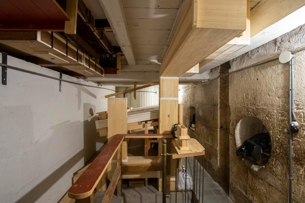 Se ha saneado y pintado la sala de los fuelles y provisto de barandilla y seguridad para la escalera.