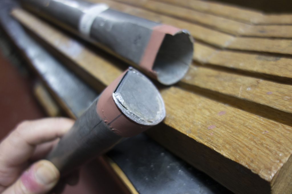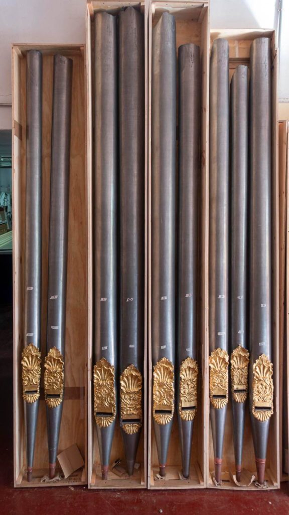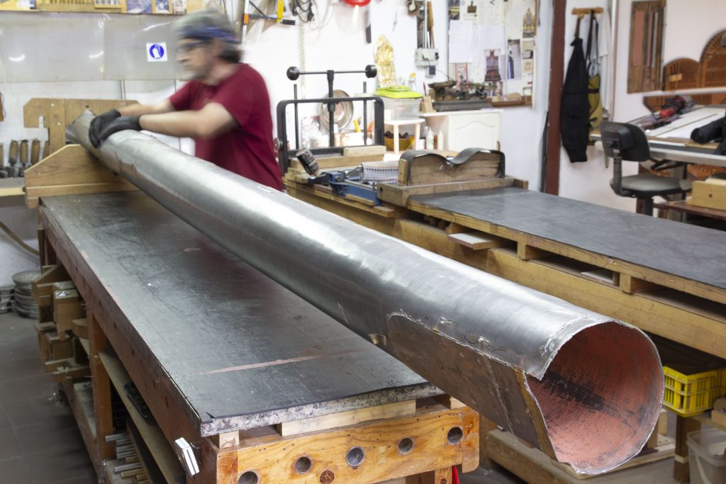 La tubería del Flautado de 26 está preparada para su montaje en el órgano.
