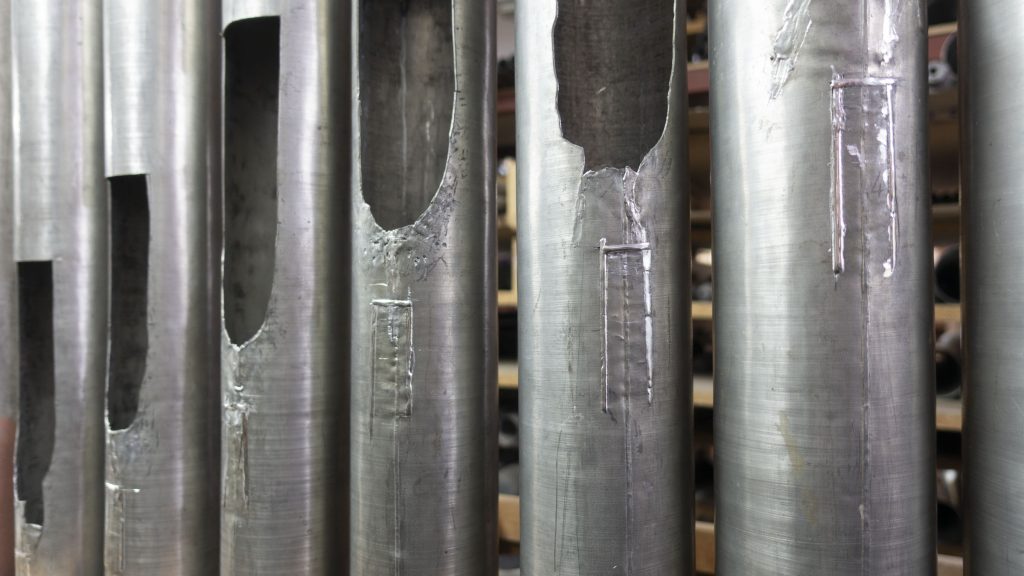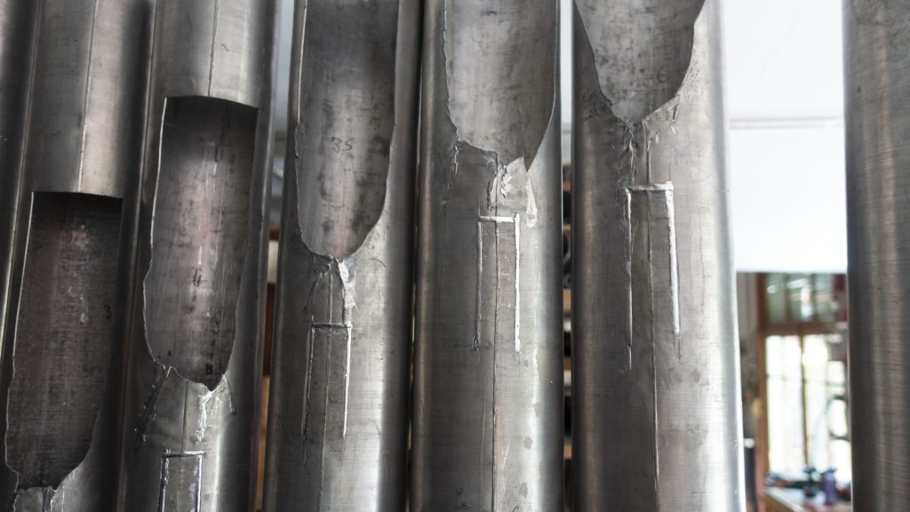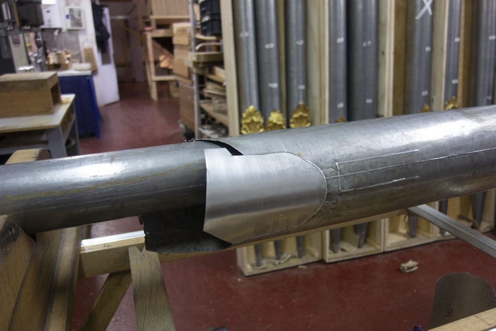 Diferentes trabajos se han realizado en cada tubo para devolver su estabilidad física sus parámetros de diapasón y armonización y recuperación de su voz.