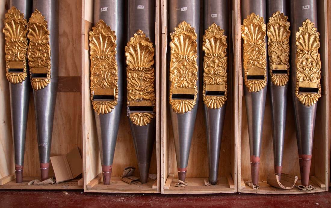 Diferentes trabajos se han realizado en cada tubo para devolver su estabilidad física sus parámetros de diapasón y armonización y recuperación de su voz.